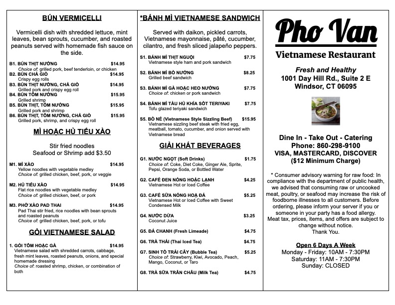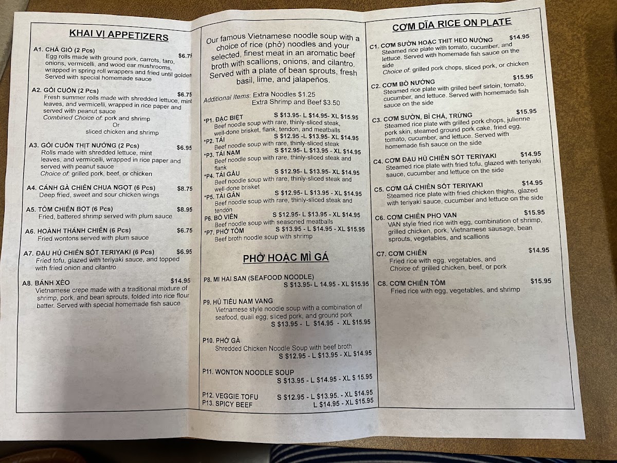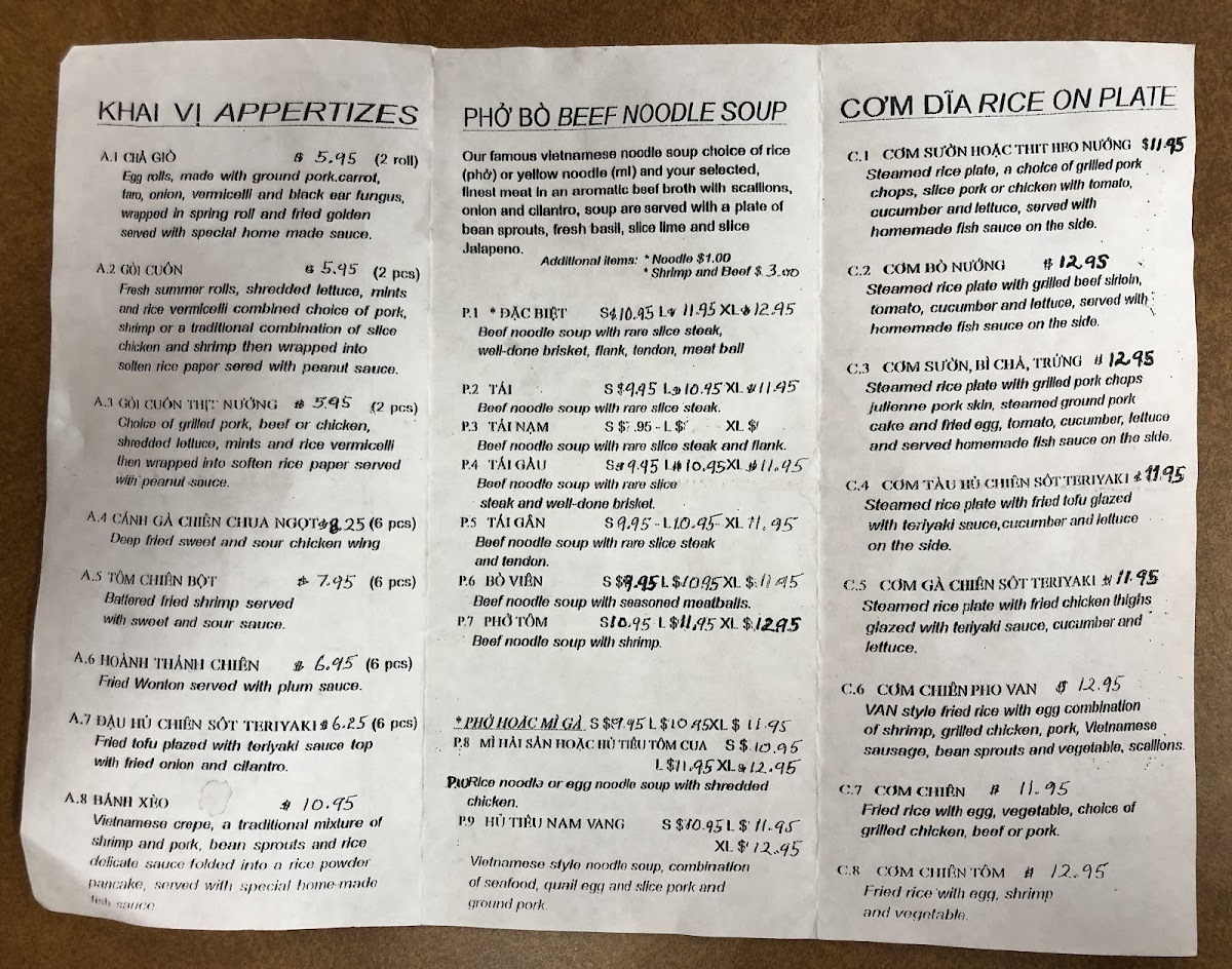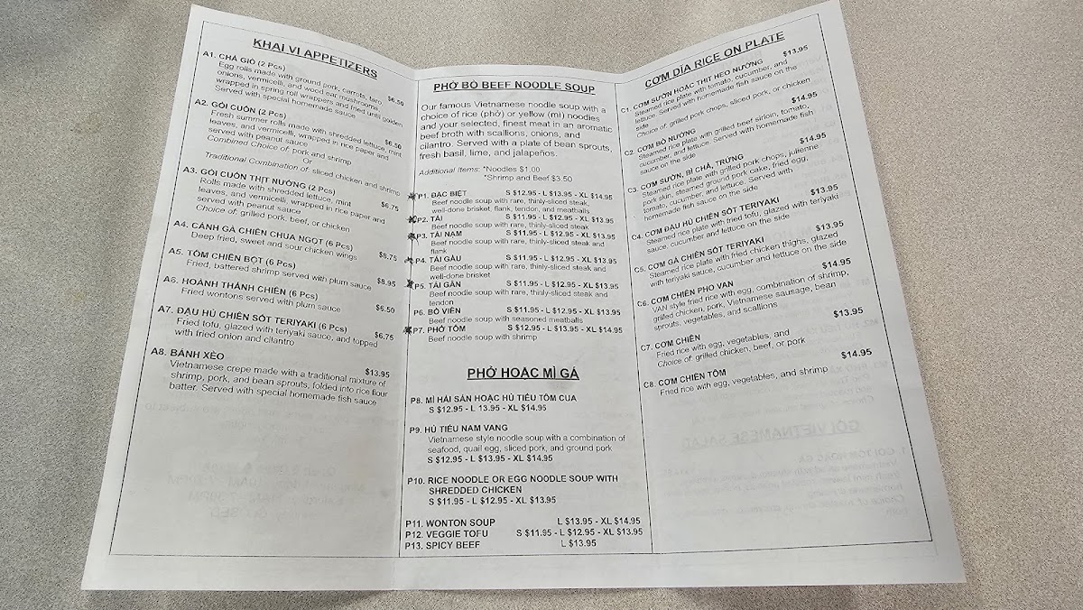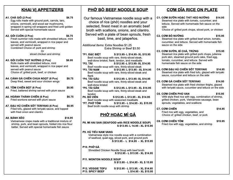 Pho Van Menu
