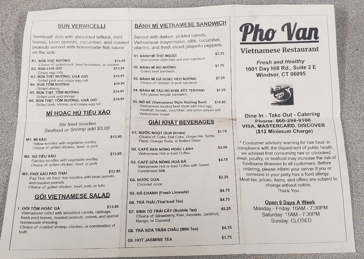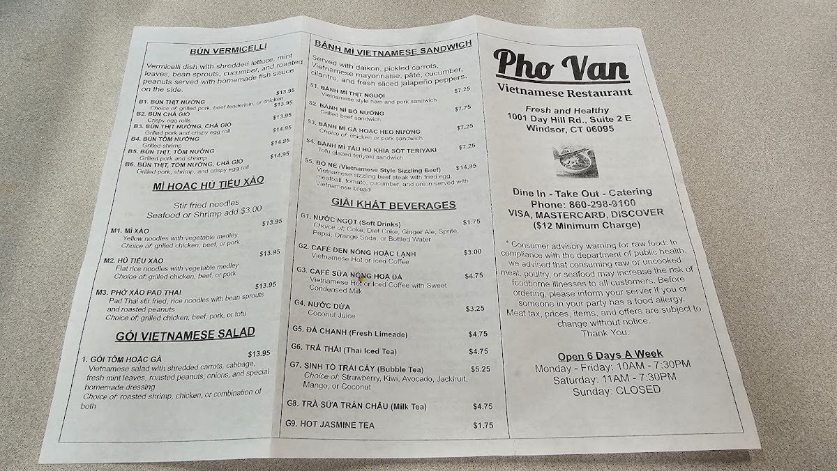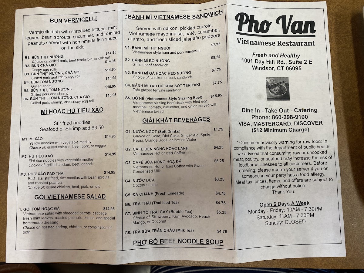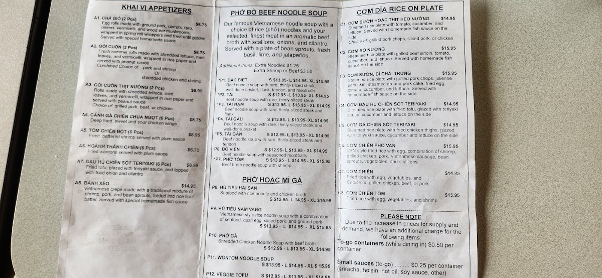Pho Van Menu